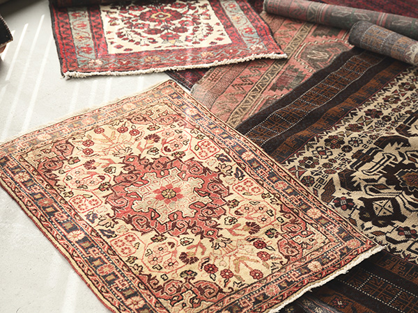 様々な部族の手によって作られ20年~30年ほど年月が経った絨毯「ヴィンテージラグ」。